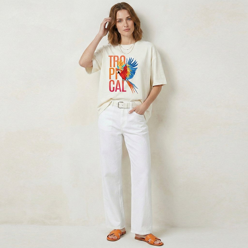 Camiseta Oversized Feminina Arara Tropical – Algodão Premium | beTropical