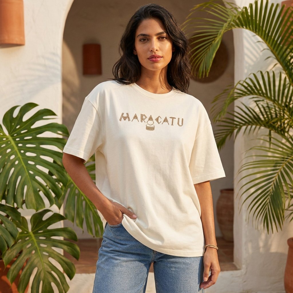 A camiseta Maracatu foi desenvolvida para mulheres que valorizam estilo contemporâneo e conforto absoluto. Com modelagem oversized e caimento estruturado, oferece visual moderno, versátil e elegante para diferentes ocasiões.