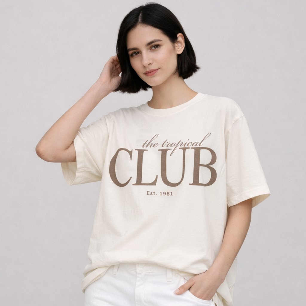 A camiseta The Tropical Club foi desenvolvida para mulheres que valorizam estilo contemporâneo e conforto absoluto. Com modelagem oversized e caimento estruturado, oferece visual moderno, versátil e elegante para diferentes ocasiões.